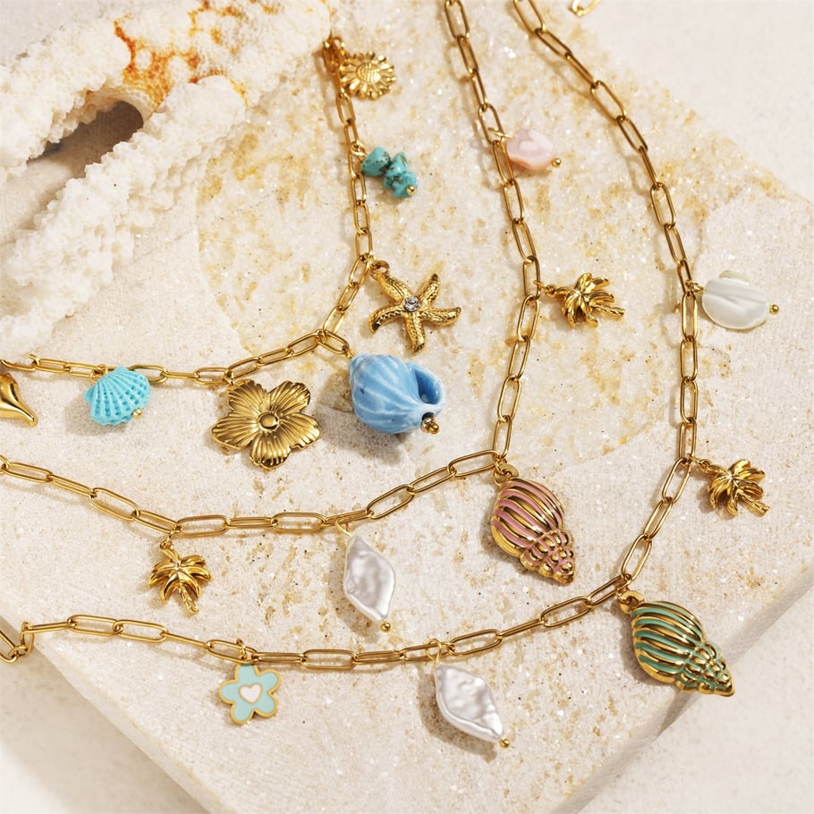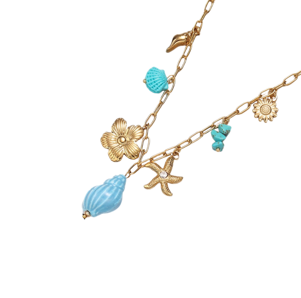 Bedelketting blauwe schelp goud
