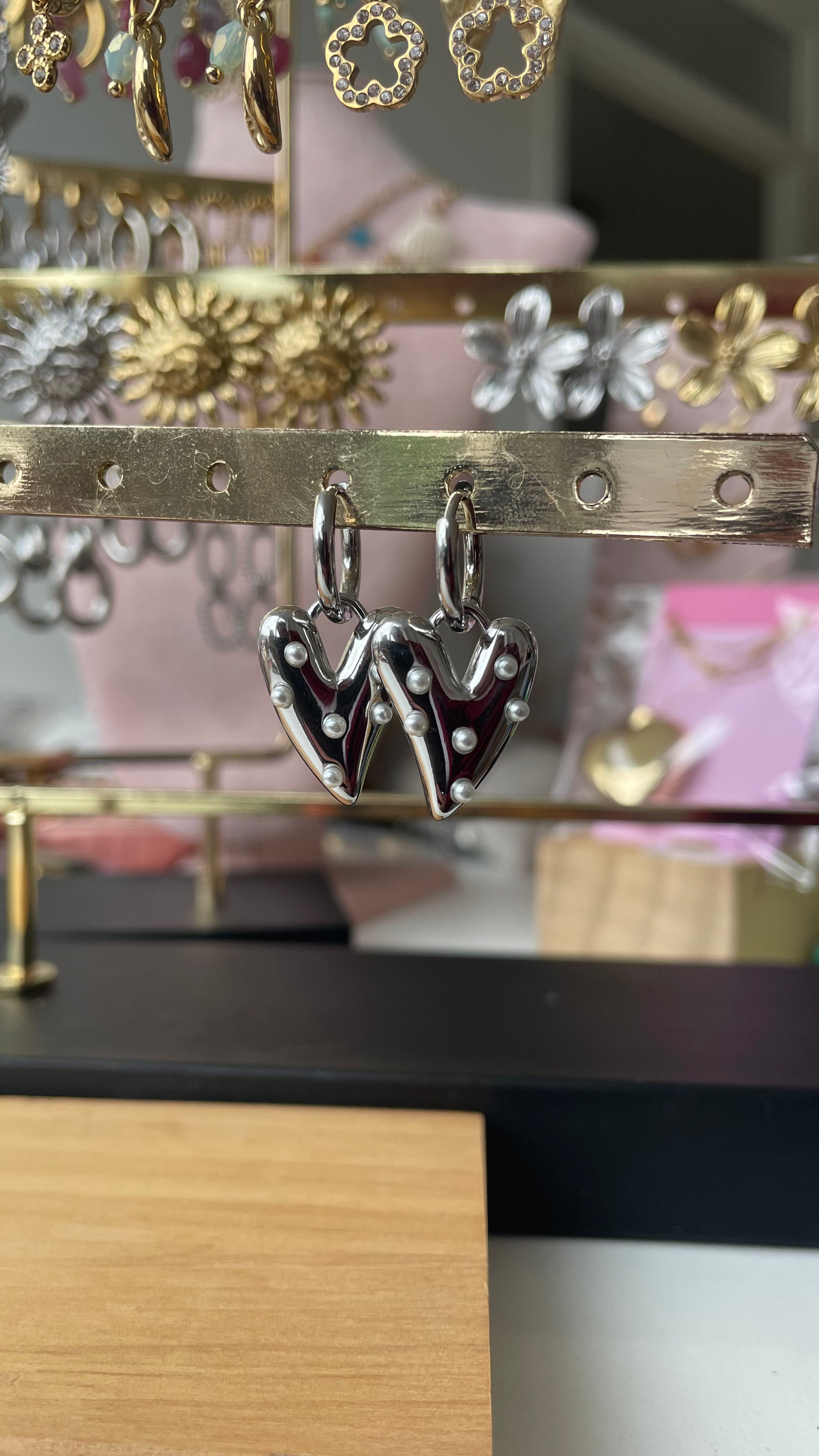 Kleine parel hart oorbellen zilver