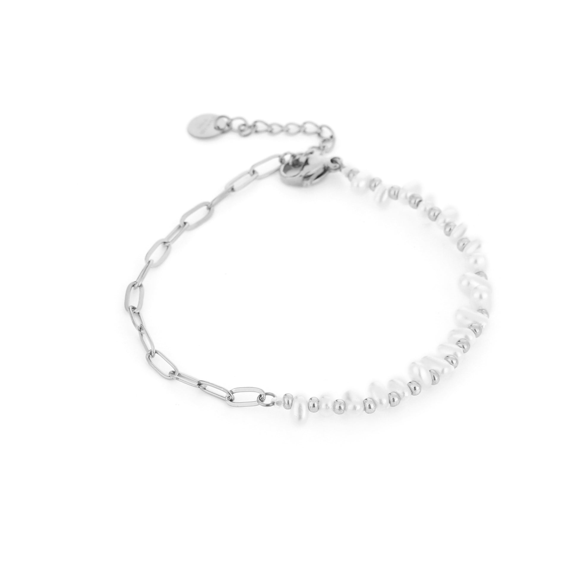 Schakelarmband met parels zilver